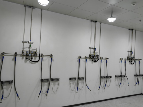 1.氣瓶間內重壓轉換控制面板與工作室外的氣路手持終端中間所采用SS316LBA管采取接觸,管線內外面光亮度為Ra<0.4umBA級管線。